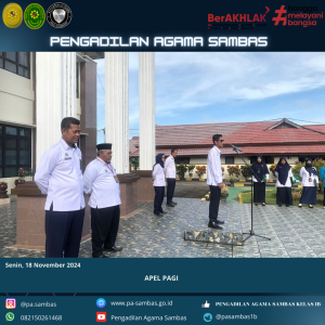 Apel pagi yang rutin dilaksanakan setiap hari Senin menjadi awal semangat untuk melaksanakan perkerjaan kembali bagi seluruh aparatur Pengadilan Agama Sambas.