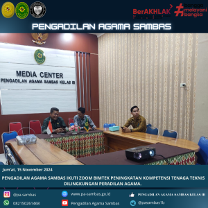PENGADILAN AGAMA SAMBAS IKUTI ZOOM BIMTEK PENINGKATAN KOMPETENSI TENAGA TEKNIS DILINGKUNGAN PERADILAN AGAMA.. Silahkan tinggalkan komentar, saran dan pesan Anda untuk kemajuan website Pengadilan Agama Sambas Kelas 1B. Terimakasih untuk dukungan dan partisipasi Anda.