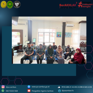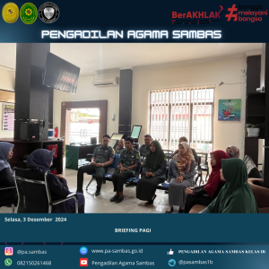 Diikuti oleh Satpam, PetugasPenjaga Sidang, Juru Sita, Petugas PTSP, Petugas Duta Reservasi, dan Petugas Posbakum, briefing dilaksanakan di ruang tunggu Pengadilan Agama Sambas pada pukul 08.00-08.15 WIB.