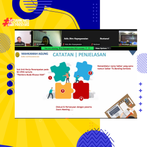 PA Sambas- Pengadilan Agama Sambas mengikuti kegiatan Sosialisasi Kesiapan Penempatan Calon Pegawai Negeri Sipil (CPNS) di lingkungan Mahkamah Agung Republik Indonesia yang dilaksanakan secara daring melalui Zoom Meeting. Kegiatan ini berlangsung pada hari Selasa, 27 Mei 2025, bertempat di Ruang Kesekretariatan PA Sambas kegiatan ini diikuti oleh Kasubbag Kepegawaian dan Ortala: Juniati, S.E., M.E. dan didampingi oleh PPNPN Administrasi Subbag Kepergawaian dan Ortala Rahmi Hadiana.