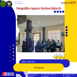 Sambas, 17 Juni 2025- Pelaksanaan Briefing Pagi Pengadilan Agama Sambas, Meningkatkan Disiplin dalam melayanin dan memberikan Pelayanan Prima Terhadap para pencari keadilan.
