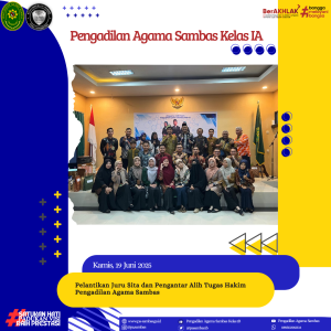 Setelah Prosesi Pelantikan, acara dilanjutkan dengan pengantar alih tugas Para Hakim Pengadilan Agama Sambas yaitu Marlisa Elpira, S.H.I., M.H. yang menjadi Haki Pengadilan Agama Sungai Raya, H. M. Auristniyal Firdaus, S.H.I., M.S.I. menjadi Hakim Pengadilan Agama Ngamprah, dan Nuzulul Hidayah menjadi Hakim Pengadilan Agama Mempawah.