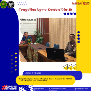 PA Sambas- Sekretaris Pengadilan Agama Sambas Agus Fitriandari,S.H.I., bersama Kasubbag PTIP H. Yudi Septiandy,S.T., mengikuti kegiatan rapat koordinasi (RAKOOR) penelaahan usulan revisi Program Nasional (PRONAS) tahun anggaran 2025 yang diselenggarakan oleh PTA Pontianak secara daring melalui zoom meeting yang berlangsung di ruang media center Pengadilan Agama Sambas