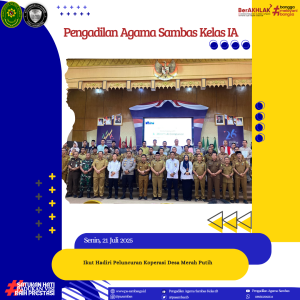 Ketua Pengadilan Agama Sambas A. Rukip,S.Ag. menghadiri kegiatan Peluncuran Koperasi Desa Merah Putih, Kegiatan berlangsung di Aula Kantor Bupati Sambas yang di hadiri dan dipimpin langsung oleh Bupati Sambas H. Satono,S.Sos.I.,M.H. yang di dampingi oleh Wakil Bupati Sambas H.Heroaldi Djuhardi Alwi,S.T.,M.T. dan turut di hadiri oleh Sekda Kabupaten Sambas,Ketua DPRD Kabupaten Sambas,Kapolres,Ketua Pengadilan Negeri Sambas, Staf Ahli Bupati,Asisten Sekda, Kepala Perangkat Daerah, Camat se-Kabupaten Sambas, dan Kepala Desa se-Kabupaten Sambas.