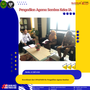 Sekretaris Pengadilan Agama Sambas Agus Fitriandari, S. Ag., kedatangan dari perwakilan pihak Dinas Pemberdayaan Perempuan, Perlindungan Anak Pengendalian Penduduk dan Keluarga Berencana (DP3AP2KB) dalam rangka Koordinasi Pelaksanaan Pembaharuan MOU yang sudah berlangsung selama ini dengan Pengadilan Agama Sambas.