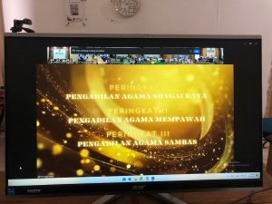 Kegiatan Zoom meeting tersebutpun berlangsung di ruang media center Pengadilan Agama Sambas yang di ikuti oleh Ketua, Panitera, Sekretaris, Panmud, JS dan JSP Pengadilan Agam Sambas