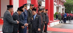 Bupati Sambas H.Satono,S.Sos.I.MH., selaku Inspektur Upacara pada kegiatan upacara tersebut, juga turut dihadiri oleh Sekda, Kepala Dinas, Para Pejabat dan Seluruh PNS dan PPPK Kabupaten Sambas